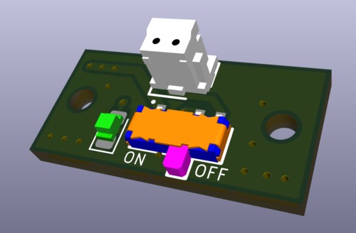 A tiny on/off slide switch and charge socket module for model vehicle installation using a single LiPo cell or NiMH battery. It comprises a ultra micro slide switch, JST-ZH charge connector and small LED mounted on a 20x10mm PCB. The LED may be used to repeat a receiver's on-board LED in case the receiver is completely installed with a vehicle body; this feature is called 'LED2' in receiver documentation.